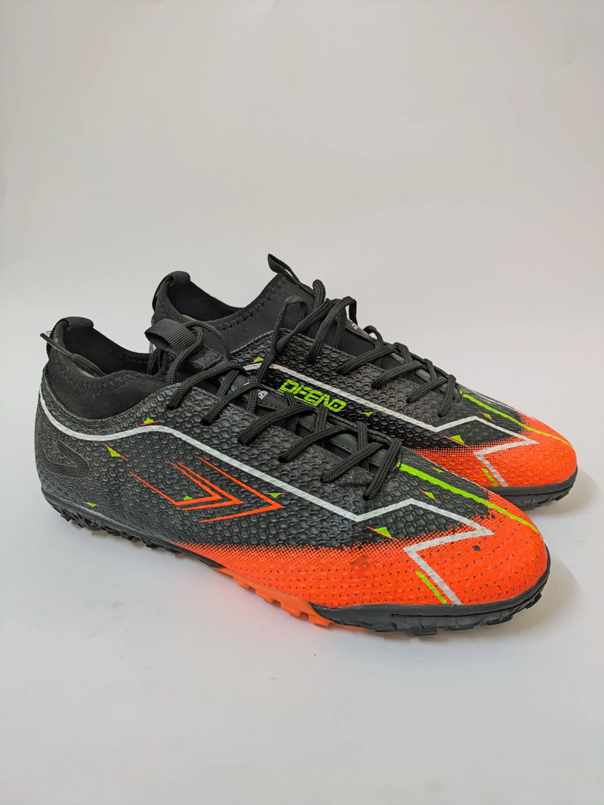 These are Football Gripper Shoes in black and orange, designed for players who want comfort, durability, and superior grip during training and matches.