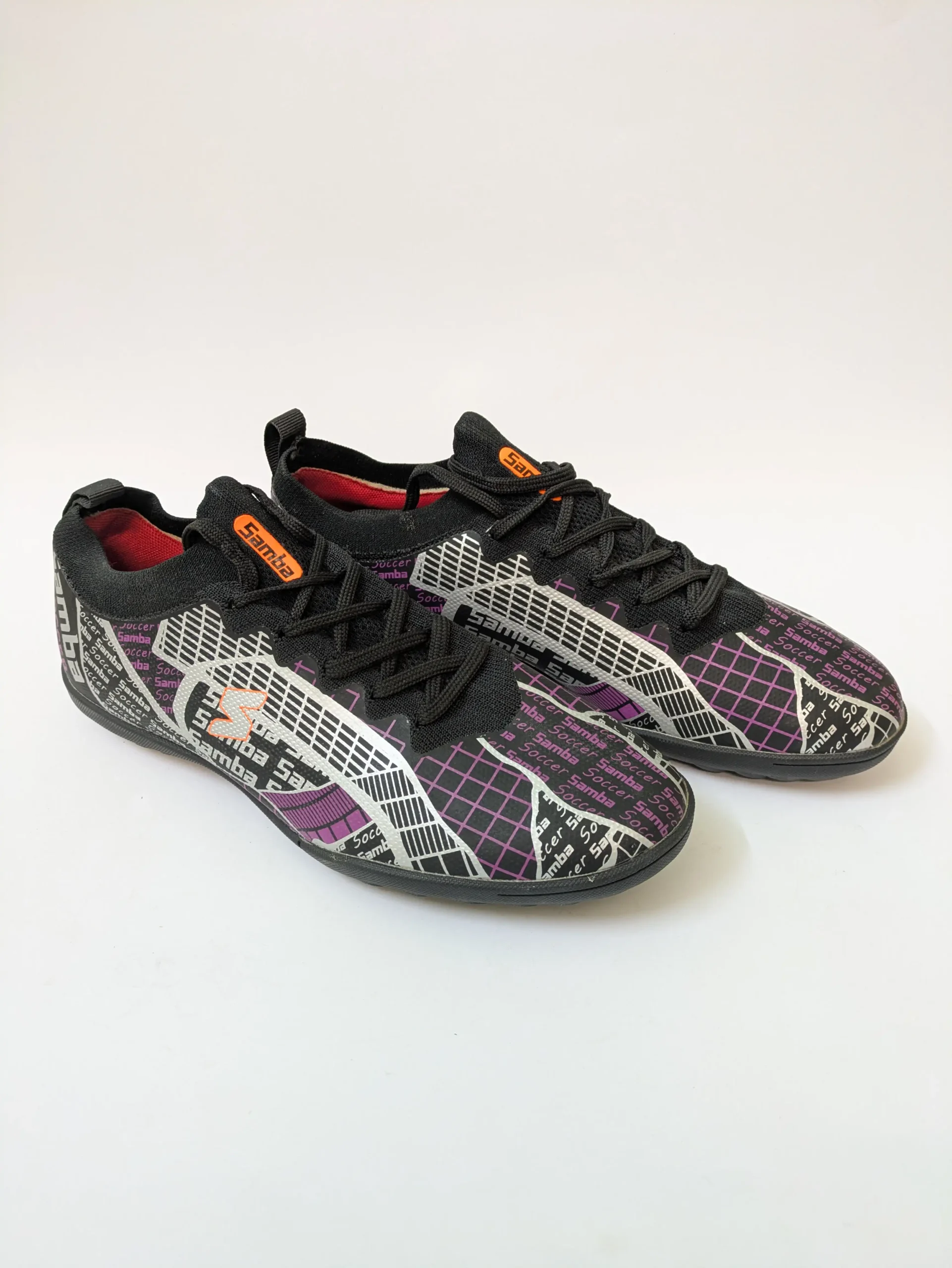 Branding: “Samba Soccer” graphic pattern and prominent “Samby” logo on the heel
